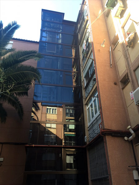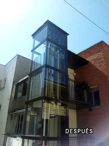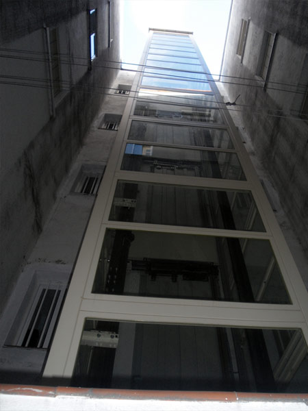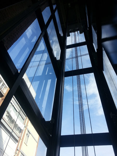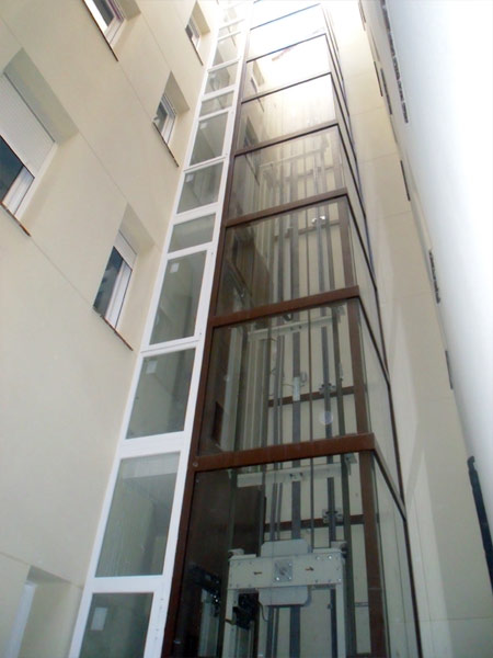 Ascensor por Fachada, Cabina Panorámica, Cerramiento de Cristal